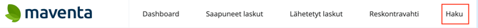 Haku-työkalun käyttö yritysten ja niiden laskutusosoitteiden etsimiseen Maventan rekistereistä.